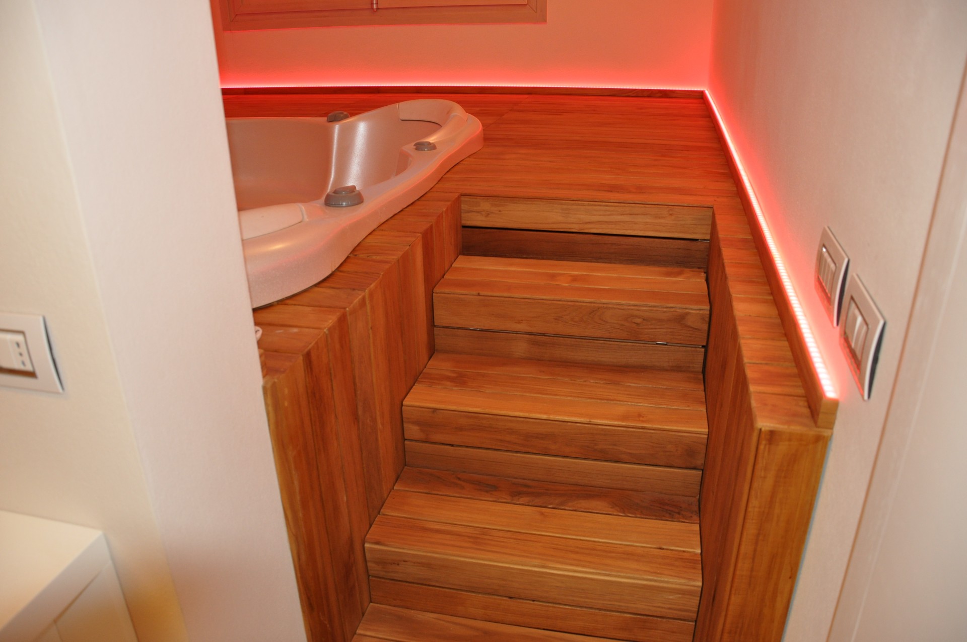Letto con cassone costruito artiginalmente su misura arricchito da illuminazione a led.