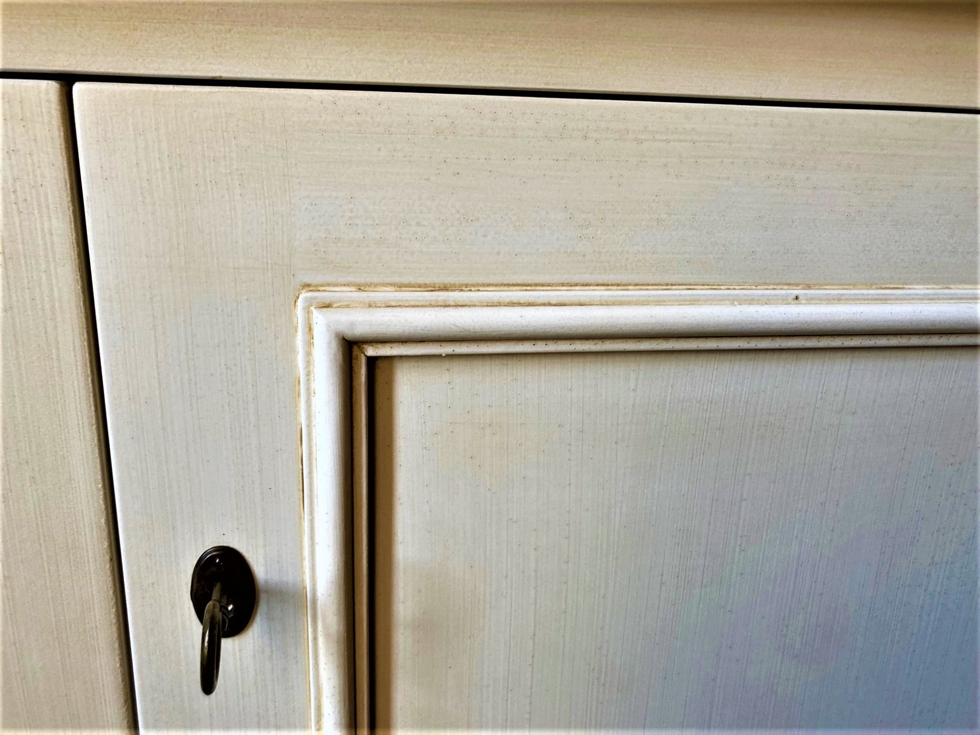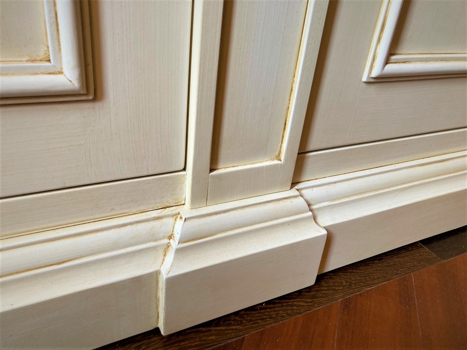 Libreria costruita su misura in legno e laccata a pennello con finitura anticata.